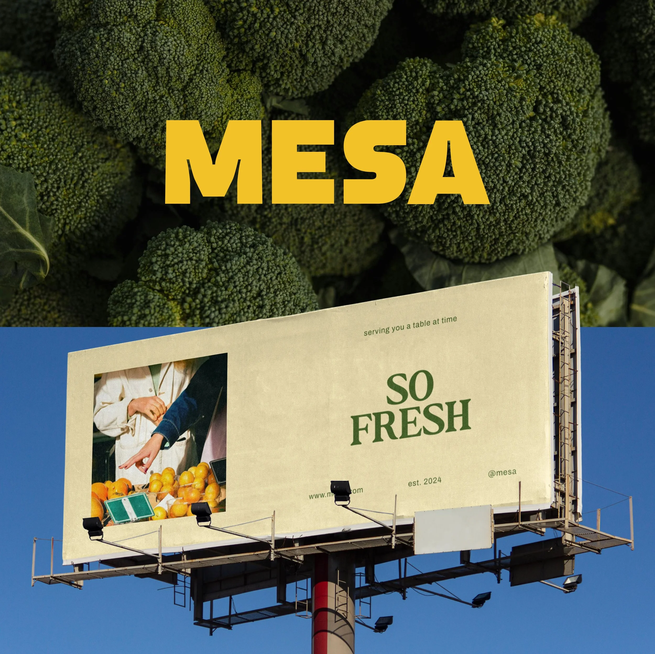 Mesa es una empresa local dedicada a la distribución de alimentos en el sector tri-county, especializada en frutas y vegetales de la más alta calidad. El branding de Mesa fue pensado para destacar y ser distinto, con su tipografía robusta y contemporánea, transmite una imagen de confianza y profesionalismo, mientras que el diseño refleja la esencia de la marca: frescura, precisión y excelencia, utilizando una paleta de colores que evoca lo natural y orgánico, combinada con una estilización moderna y minimalista, lo que resalta su compromiso con la calidad en cada detalle.