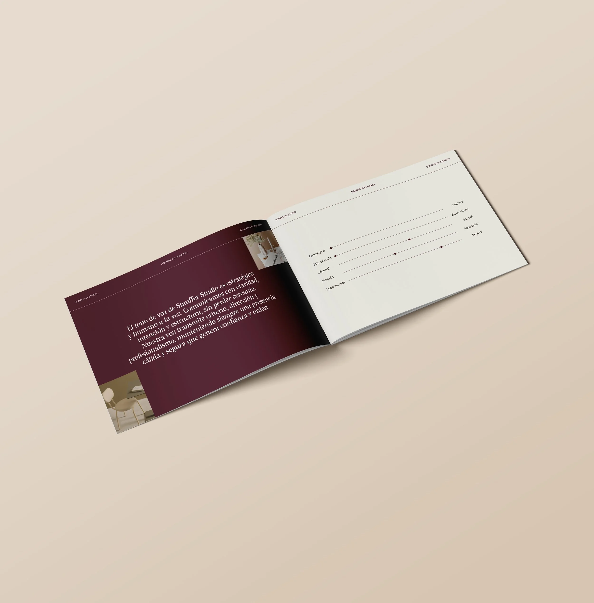 Este es el documento que organiza y aterriza todo el sistema visual de la marca. Es la plantilla pensada para presentar de forma clara cómo debe usarse la identidad una vez aprobada.